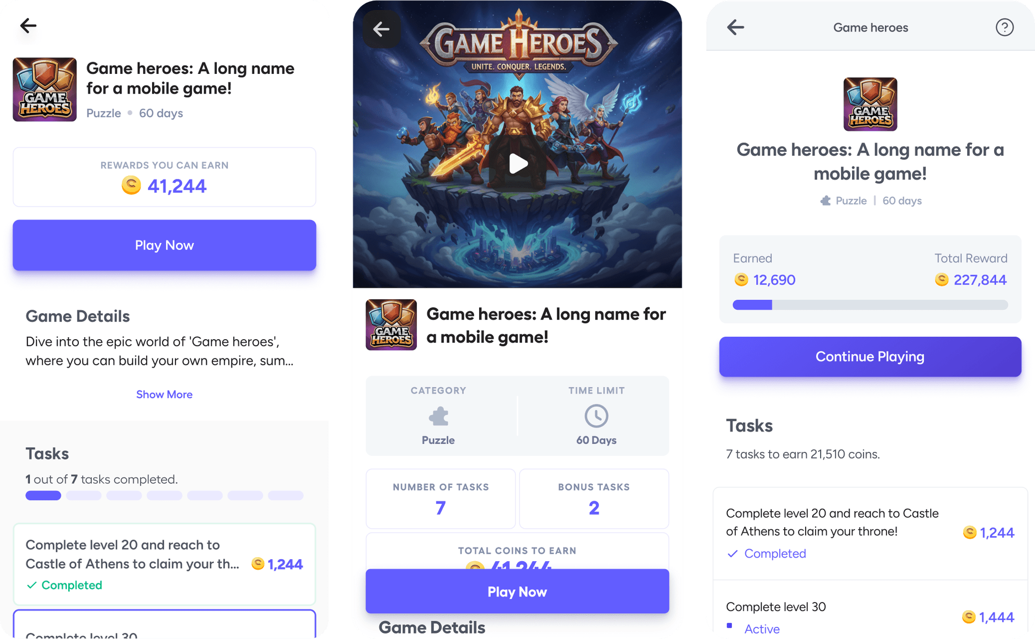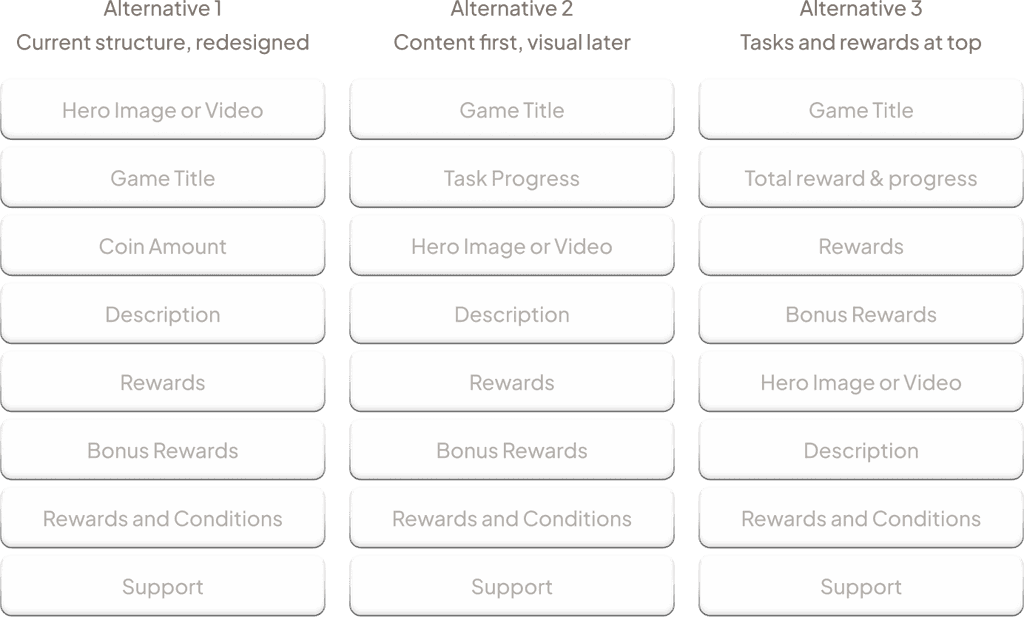 User priority matters. Unlike store pages that start with game descriptions, users prefer seeing rewards and tasks first.
