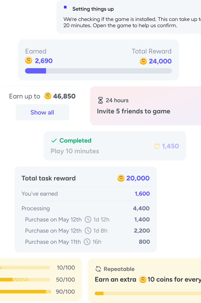Redesigned Playtime’s offer details page with a clearer, goal-oriented layout, boosting click-to-install by 8% and revenue by 6%.